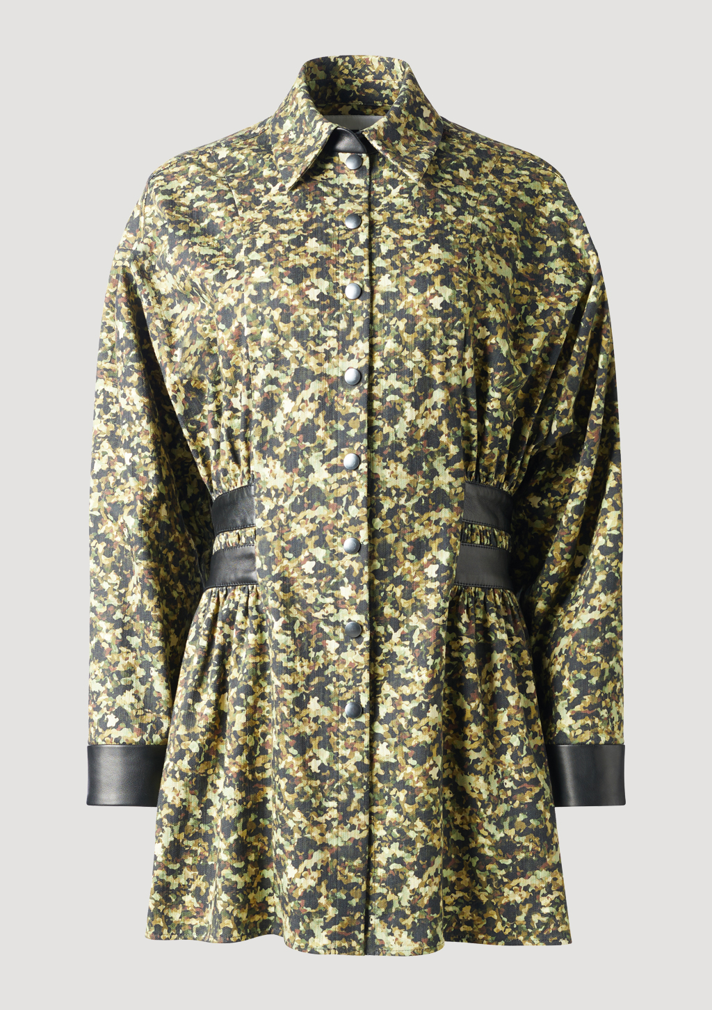 Das Camouflage Kleid wird vollständig im Hamburger Atelier von Stefan Eckert produziert. Dabei basieren die Verarbeitungstechniken auf der hohen Kunst des Schneiderhandwerks. Auf diese Weise entsteht das gezeigte Modell in feiner Handarbeit, ausgeführt von den hauseigenen Maßschneiderinnen und Maßschneidern.