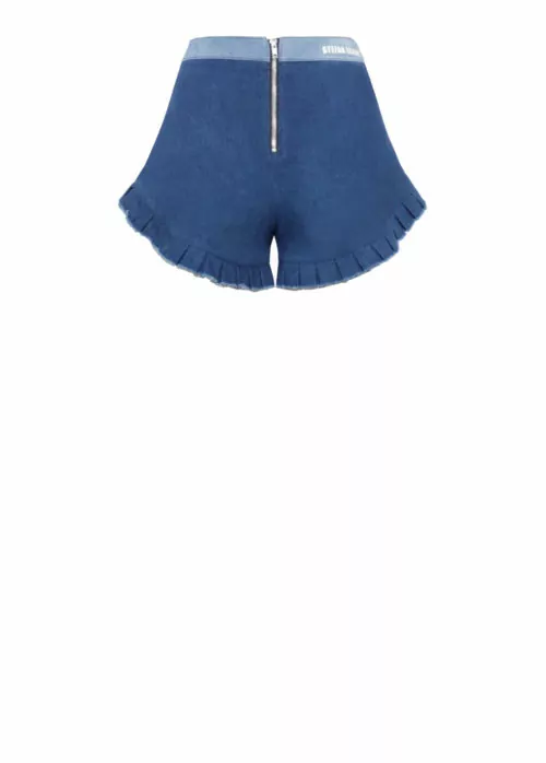 Die exklusive “Jeans Shorts Damen – Dunkelblau” von Designer Stefan Eckert ist aus hochwertiger Baumwolle gefertigt. Dadurch hat das Modell einen einzigartigen Tragekomfort. Darüber hinaus ist die Hose auf Taillenhöhe geschnitten und verleiht dem Bein dadurch eine gestreckten Effekt. Aufgrund des figurbetonten Schnitts unterstreicht das Kleidungsstück mit Leichtigkeit die weibliche Silhouette. Die Veredlung des Modells erfolgt in kunstvoller Handarbeit und macht die Jeans zu einem wahrhaften Unikat. Die Shorts eignet sich hervorragend zum Styling eines entspannten Looks, z.B. in Kombination mit einer hochwertigen Lederjacke.